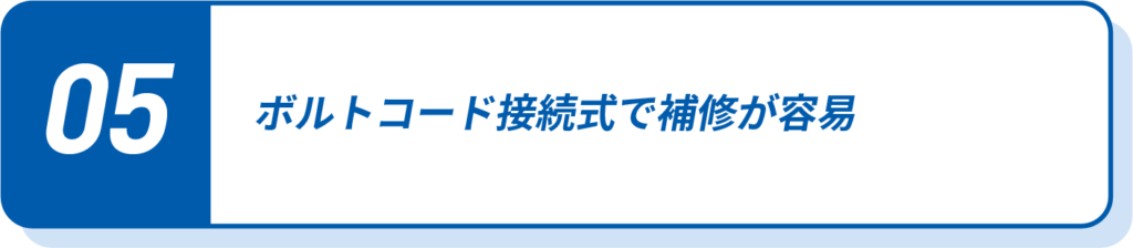 フジエナジーのフォークリフト用バッテリーは優れた性能と信頼性を提供しています。 弊社で採用しているボルトコード接続式のフォークリフトバッテリーは、欧米では主流のタイプで単セル交換が簡単で、メンテナンスが容易なことは特徴です。従来のディーラーやガス溶接の熟練者による単セル交換の必要がなく、労務費や一式交換の費用を大きく削減することが可能です。