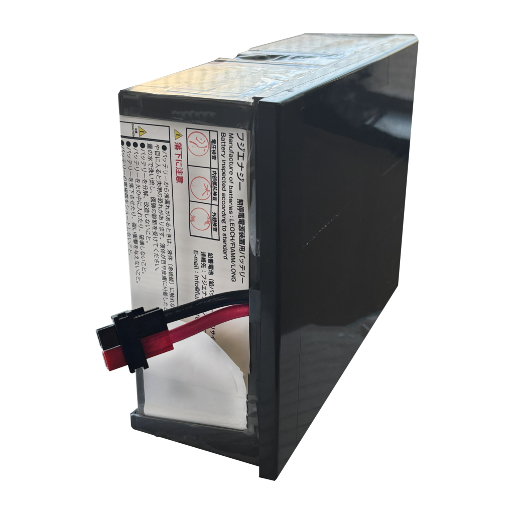 | 使用バッテリー | 本バッテリーカートリッジに使用するバッテリーは大手UPSメーカーに純正採用されているFIAMMまたはLEOCHなどのバッテリーを使用しております。 製造工場で世界規格を取得しておりますので、安心してご使用いただけます。 |