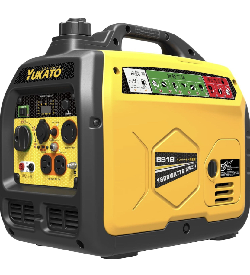 YUKATO インバーター発電機 定格出力1.8kVA ポータブル発 小型 家庭用 50Hz/60Hz切替 防音型 高出力正弦波インバーター搭載 過負荷保護 ガソリン発電機 PSE認証 軽量 アウトドア レジャー 防災 備蓄 災蓄 非常用 (定格出力1.8kVA)